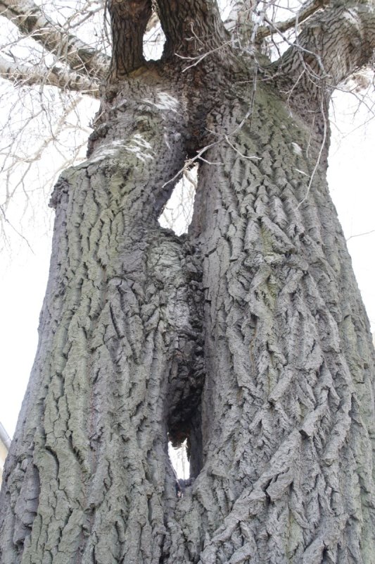 Schon vom Auto aus habe ich die zwei Verwachsungen des Stammes entdeckt, die zwei sogenannte Elfenaugen bilden. So besuchte ich den Baum einen Tag später.